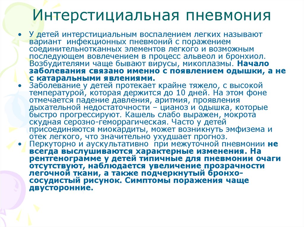 лобарную и интерстициальную пневмонии.
