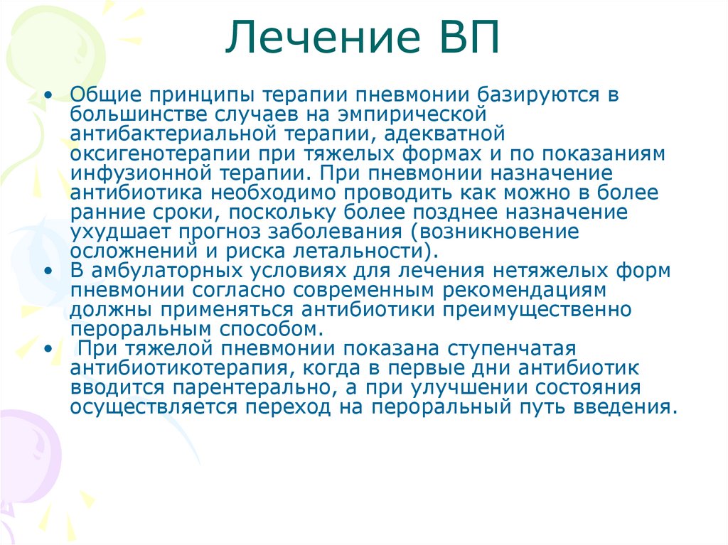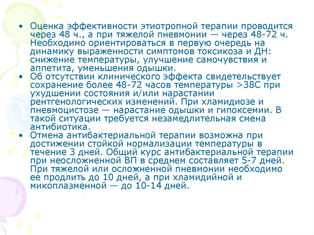 • Общая антибактериальная терапия назначается с учетом