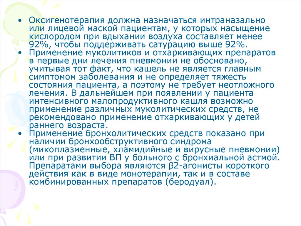 аэротерапии. В период выздоровления назначают