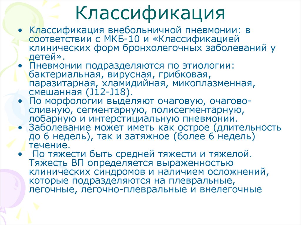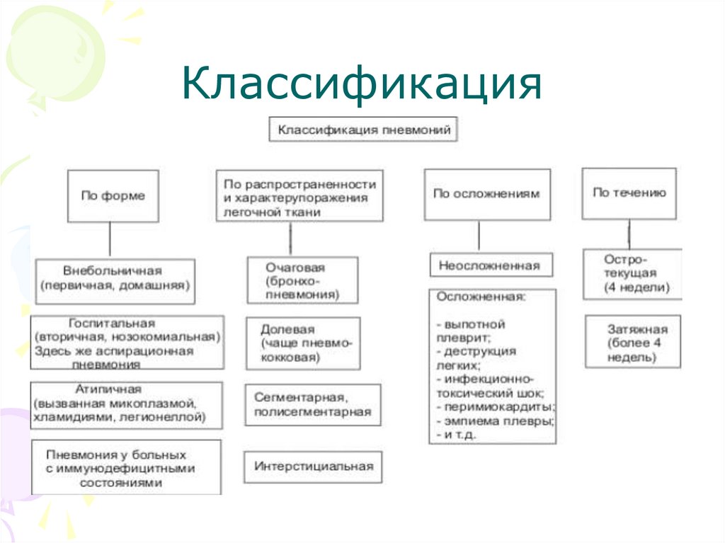 Классификация• Классификация внебольничной пневмонии: в