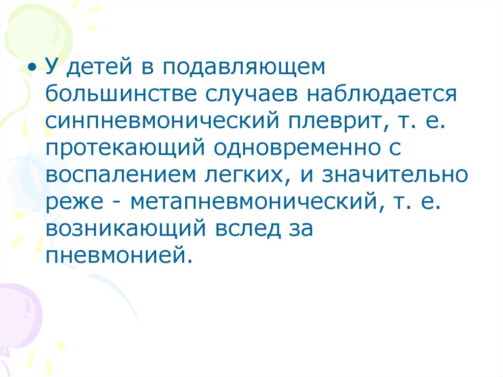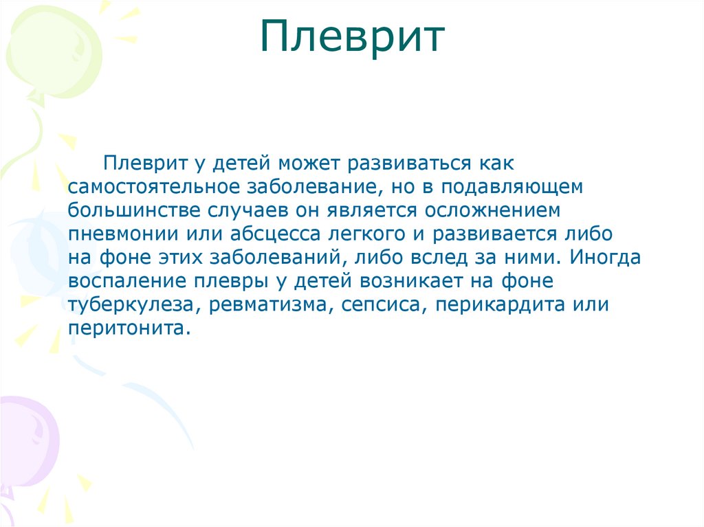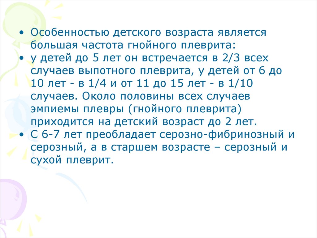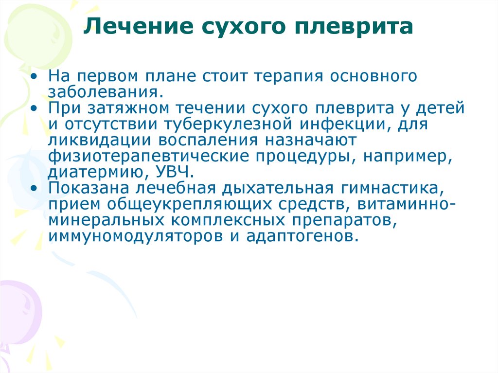 • При затяжном течении сухого плеврита у детей