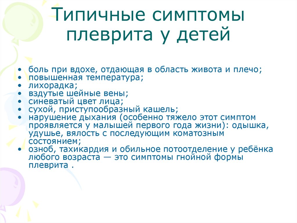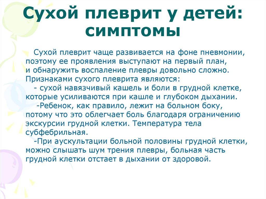 Сухой плеврит у детей:симптомы