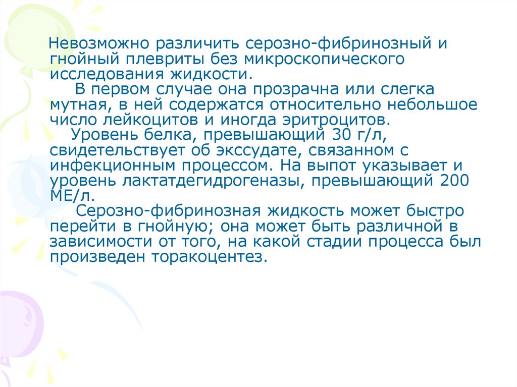 Невозможно различить серозно-фибринозный игнойный плевриты без микроскопического