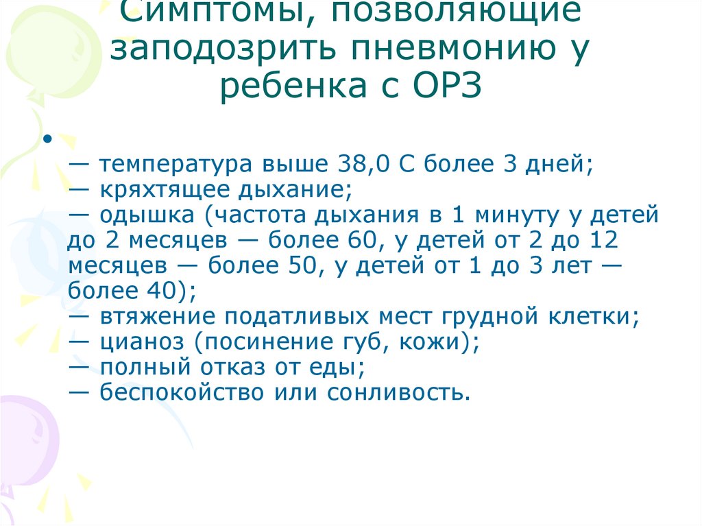 Симптомы, позволяющиезаподозрить пневмонию у