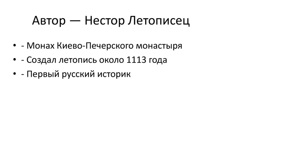 Автор — Нестор Летописец• - Монах Киево-Печерского монастыря