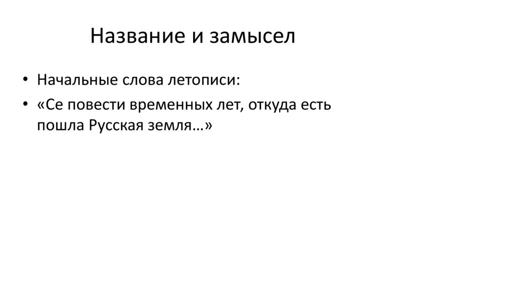 Название и замысел• Начальные слова летописи: