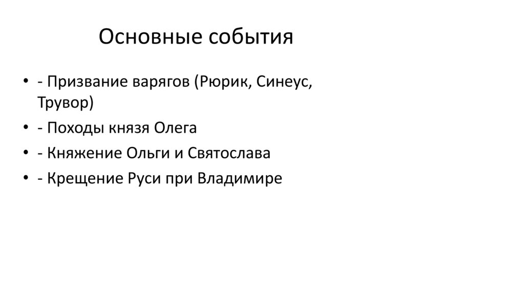 Основные события• - Призвание варягов (Рюрик, Синеус,