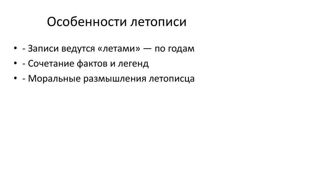 Особенности летописи• - Записи ведутся «летами» — по годам
