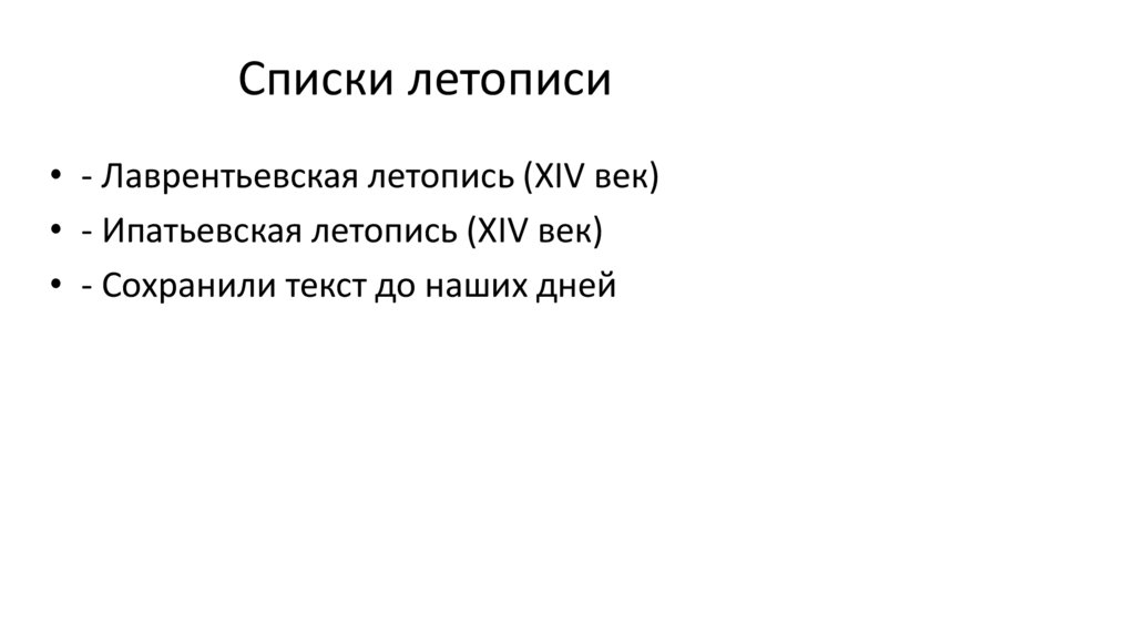 Списки летописи• - Лаврентьевская летопись (XIV век)