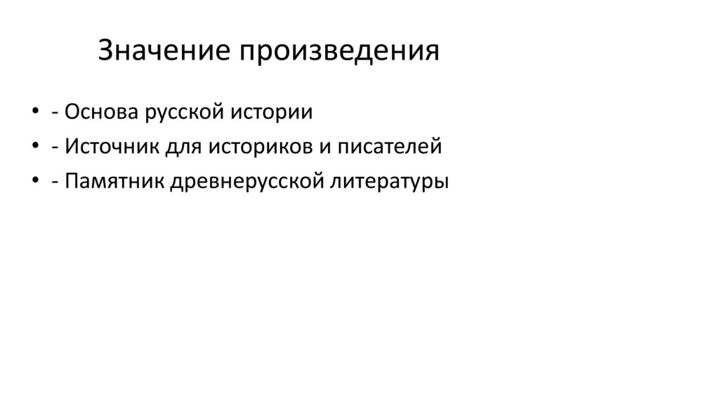 Значение произведения• - Основа русской истории
