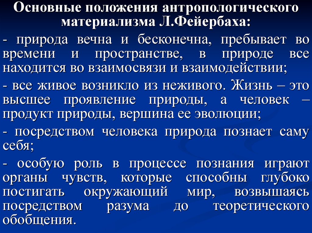 Основные положения антропологическогоматериализма Л.Фейербаха: