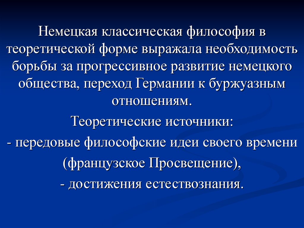 Немецкая классическая философия втеоретической форме выражала необходимость