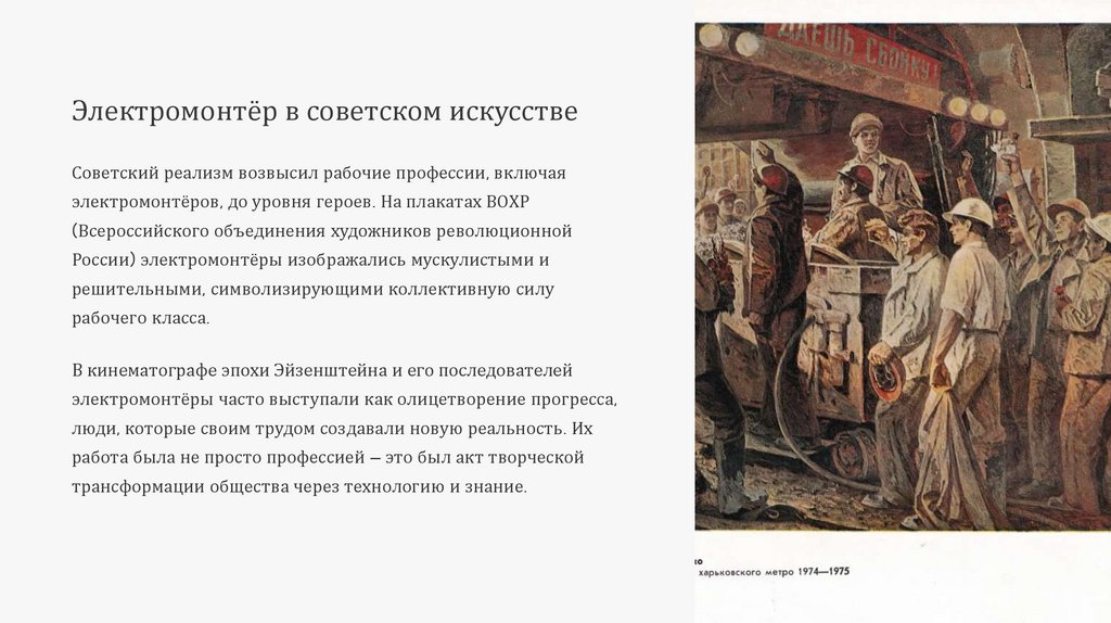 Электромонтёр в советском искусствеСоветский реализм возвысил рабочие профессии, включая