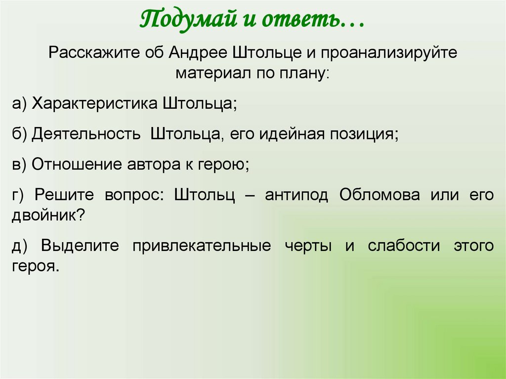 Подумай и ответь…Расскажите об Андрее Штольце и проанализируйте