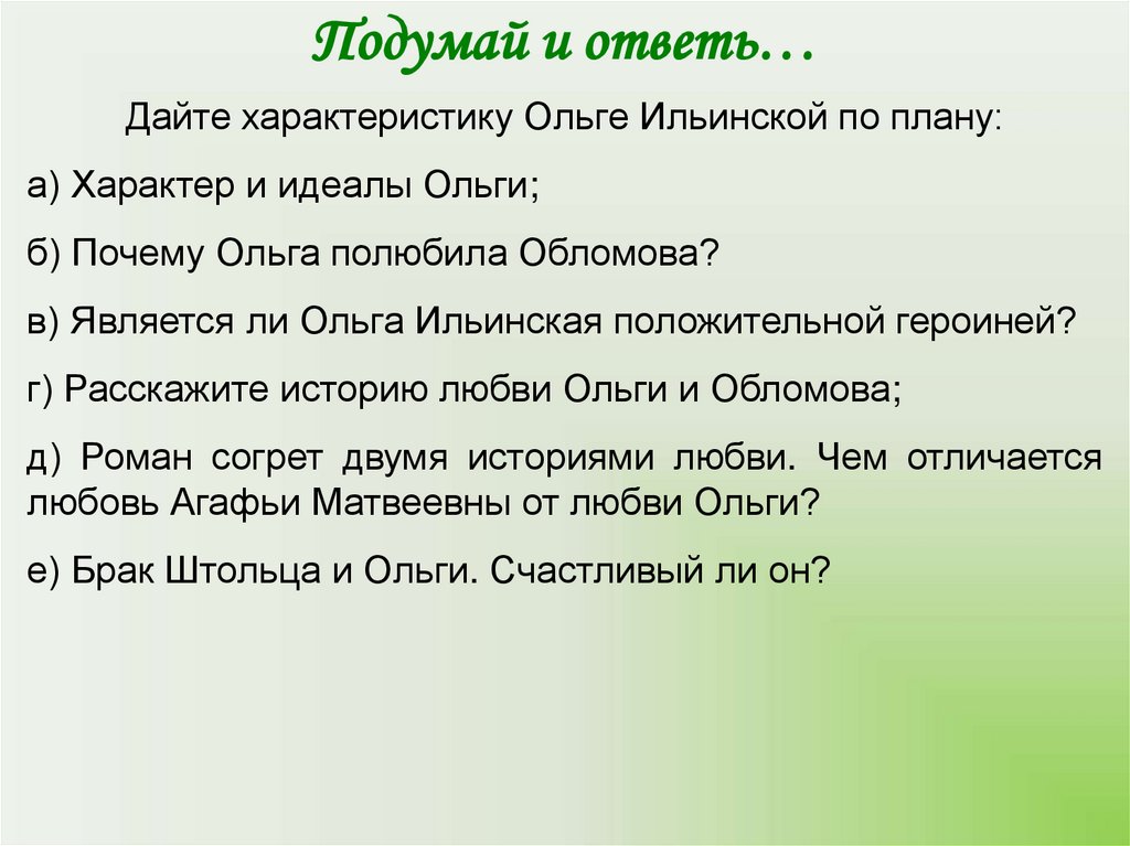Подумай и ответь…Дайте характеристику Ольге Ильинской по плану: