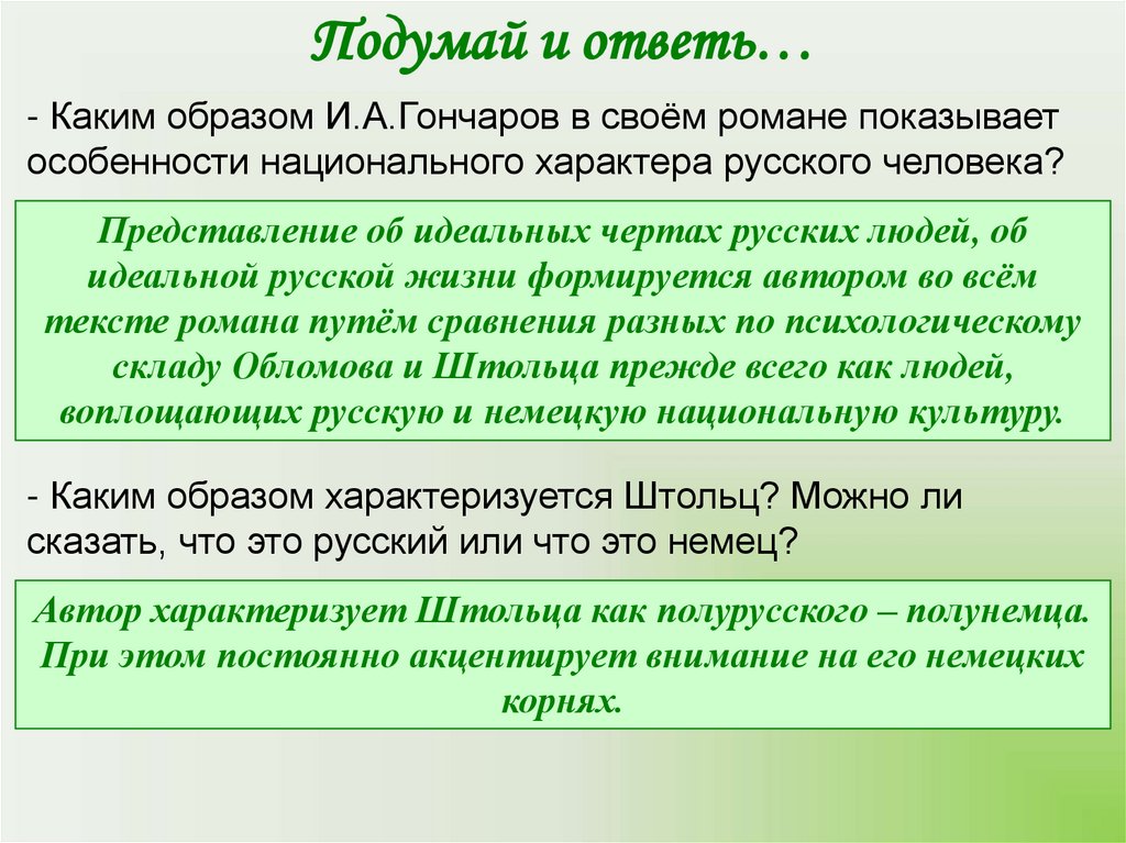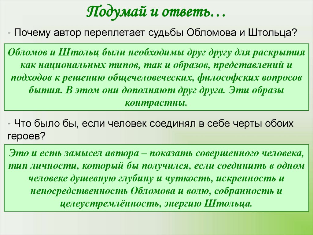 г) Решите вопрос: Штольц – антипод Обломова или его