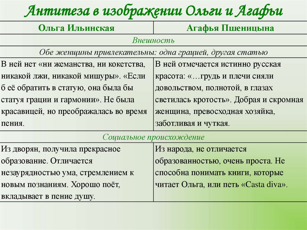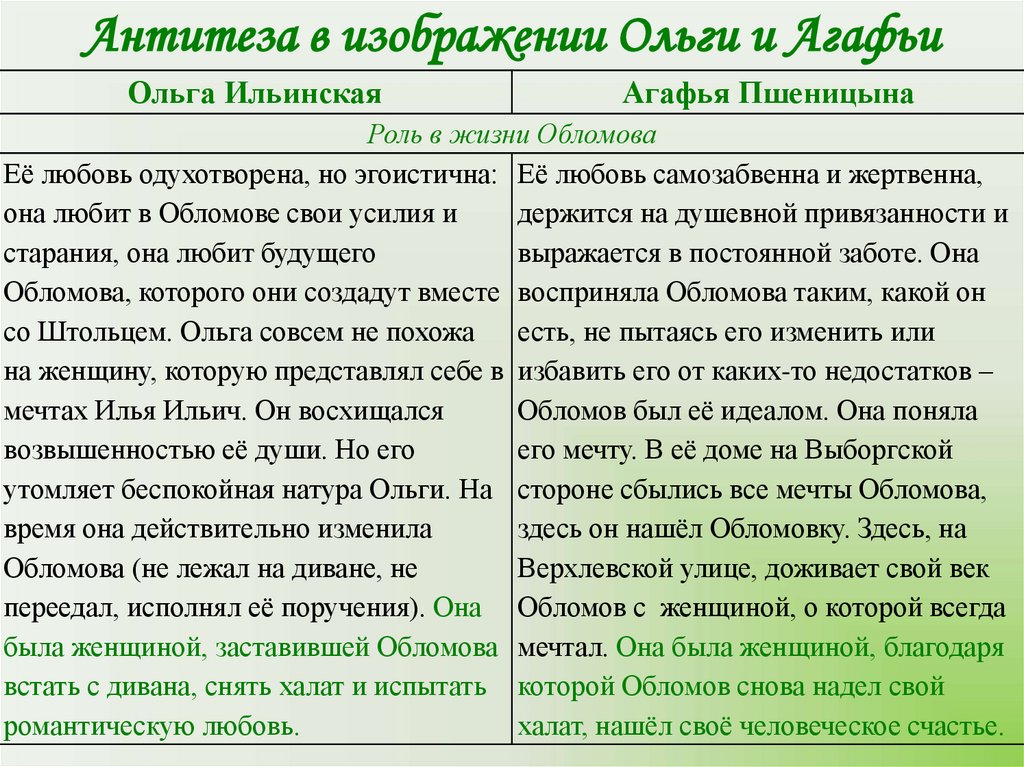 Антитеза в изображении Ольги и АгафьиОльга Ильинская