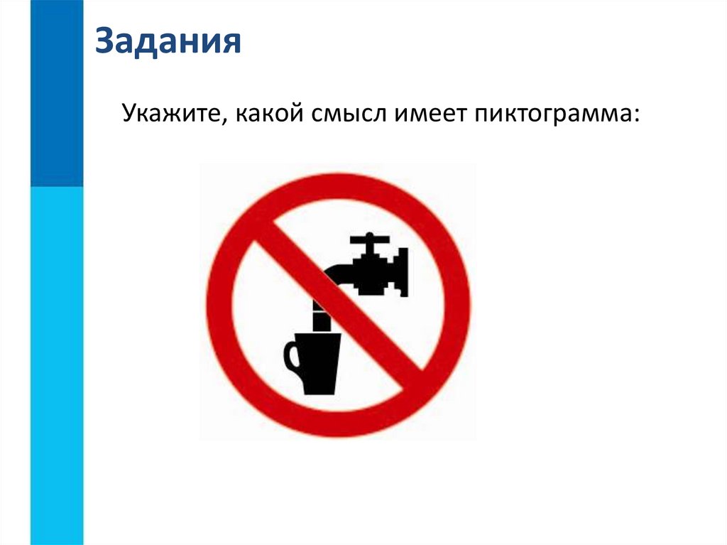 ЗаданияУкажите, какой смысл имеет пиктограмма: