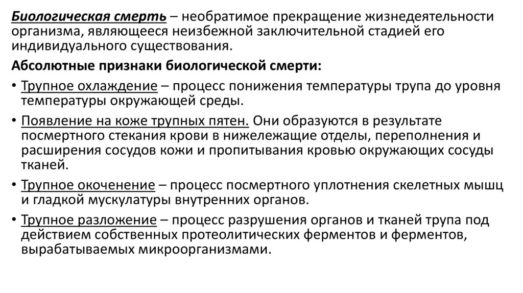 биологической смерти всегда характерно развитие в организме тех или