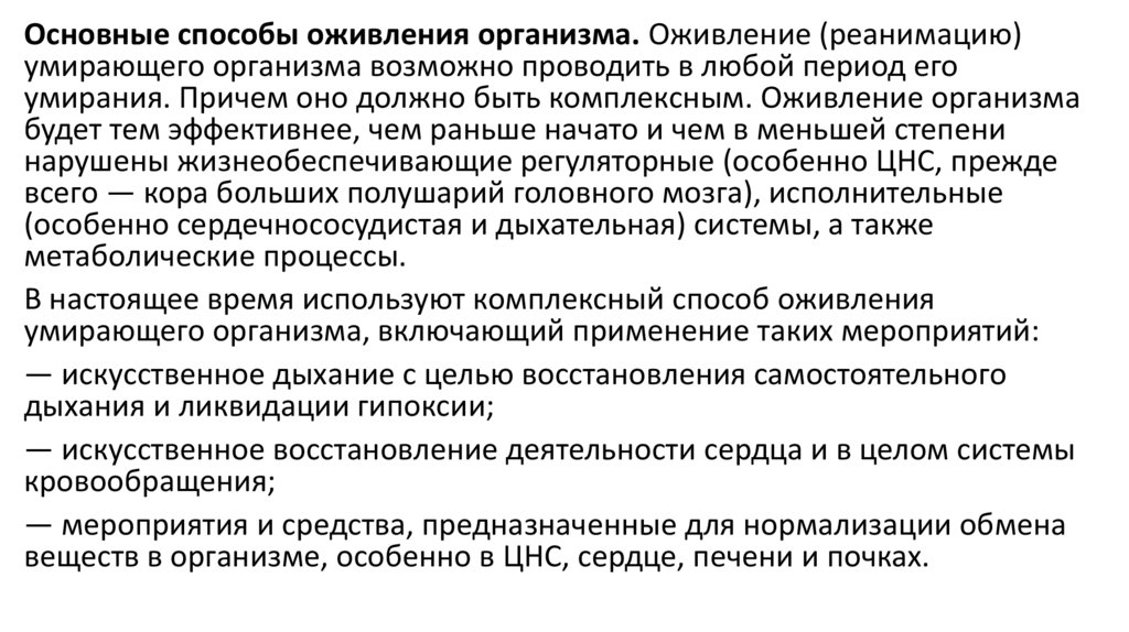 оживление организма.