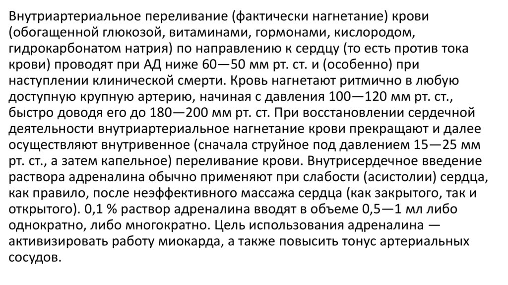 проведение реанимационных мероприятий и оживление организма.