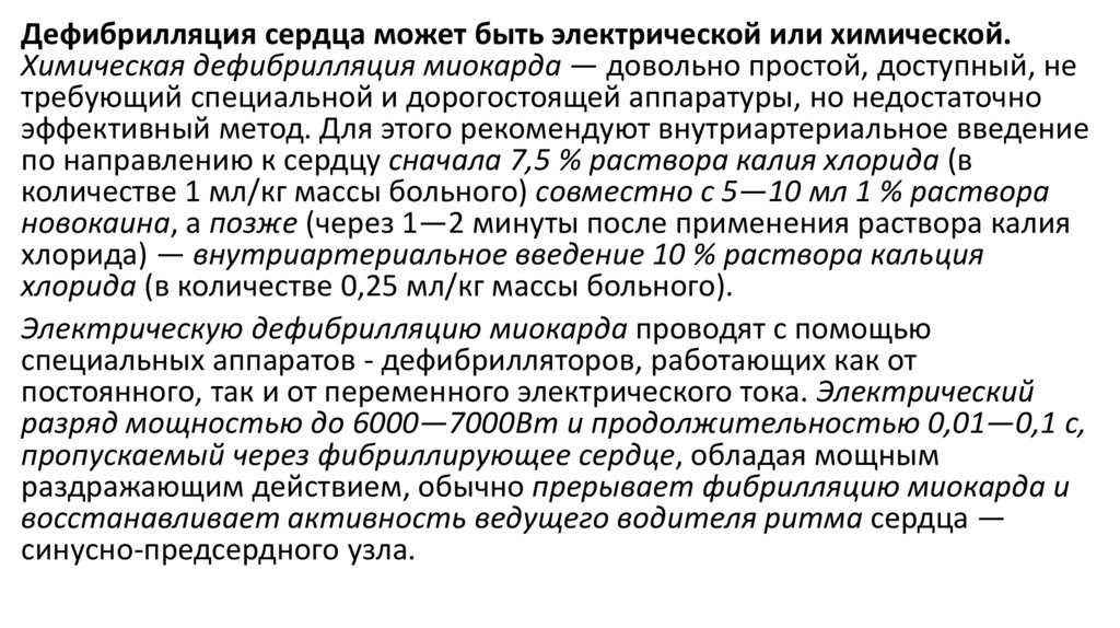 крупноволновой фибрилляции, депрессии или подъему сегмента «ST». При выполнении