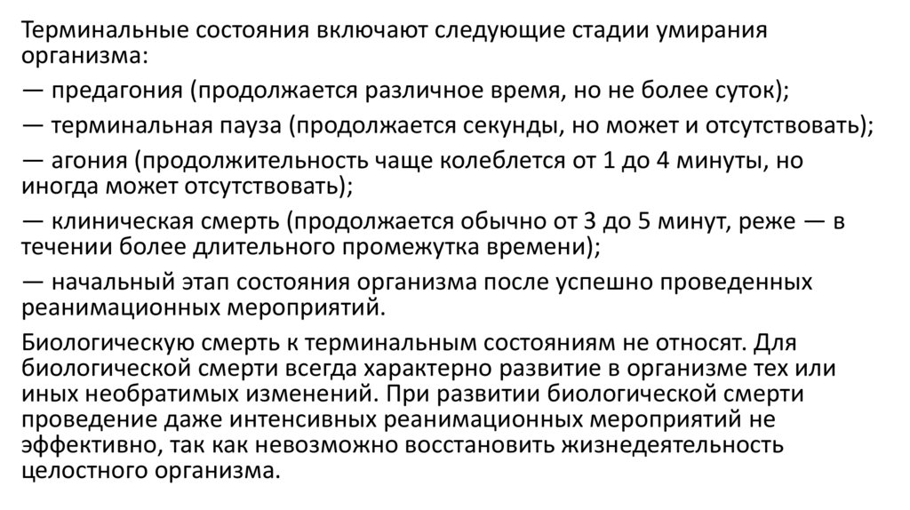 Биологическую смерть к терминальным состояниям не относят. Для