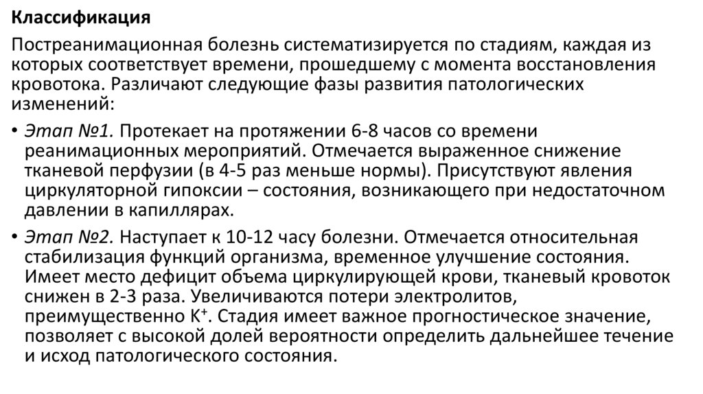 3) начальные стадии постреанимационного периода.