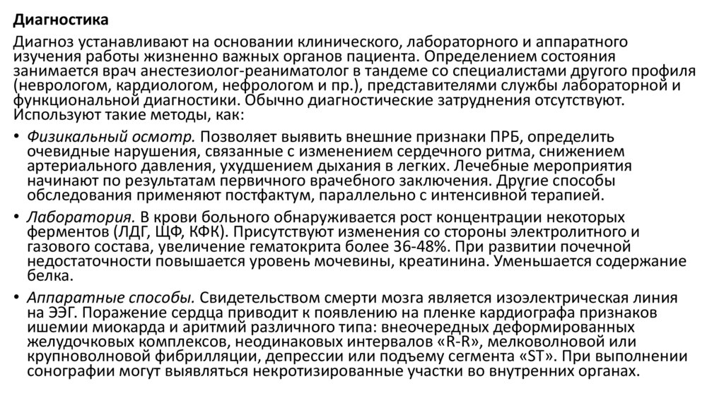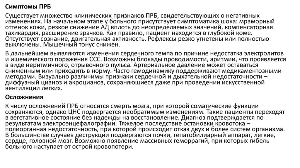 К числу осложнений ПРБ относится смерть мозга, при которой соматические функции