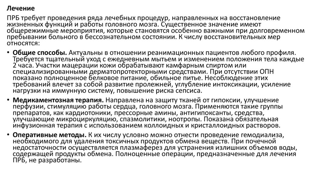 пребывании больного в бессознательном состоянии. К числу восстановительных мер