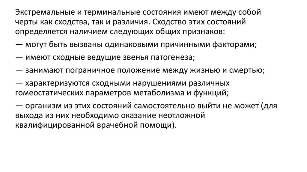 Экстремальные и терминальные состояния имеют между собойчерты как сходства, так и различия. Сходство этих состояний
