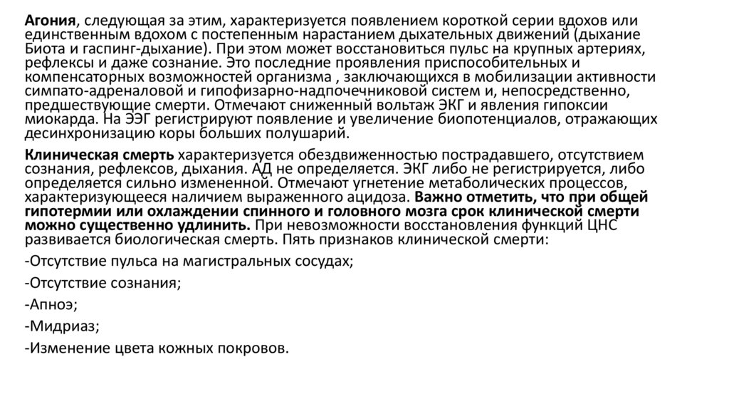 наступлении клинической смерти патологические реакции и механизмы явно