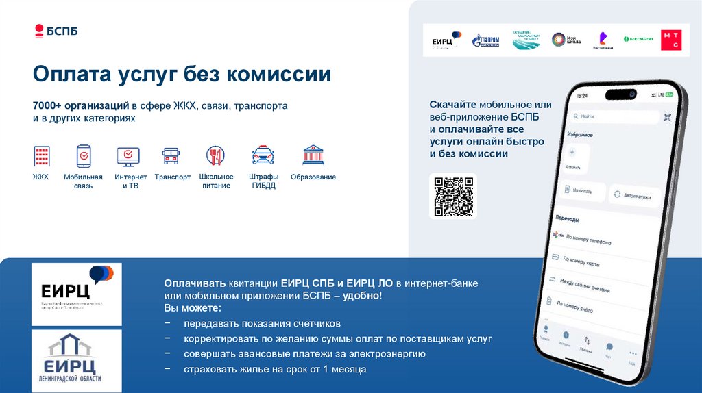 Оплачивать квитанции ЕИРЦ СПБ и ЕИРЦ ЛО в интернет-банке