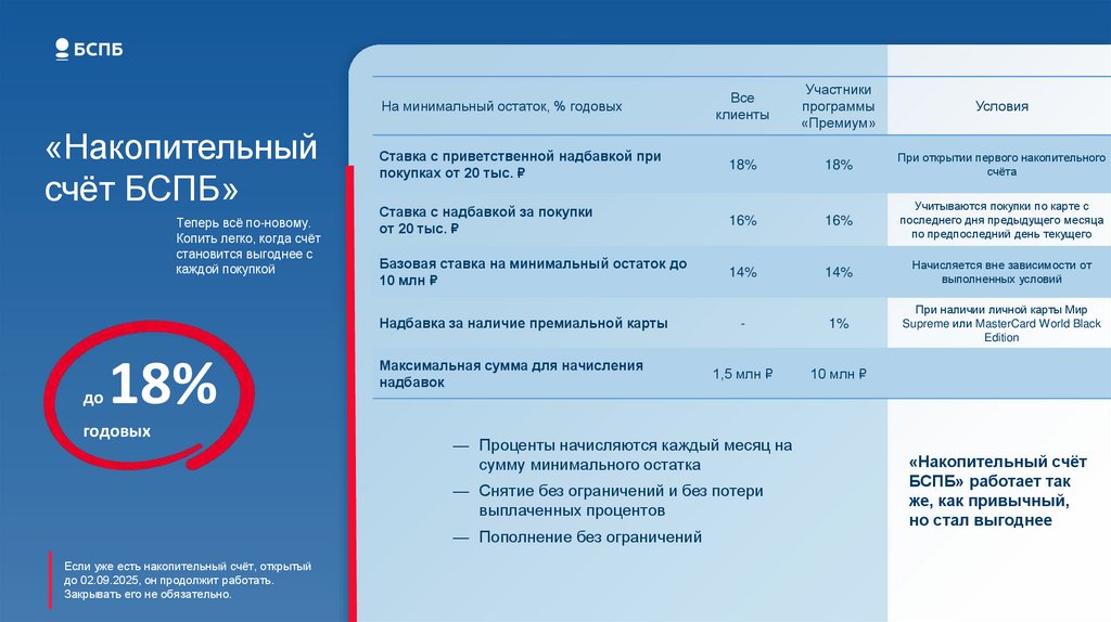 Подробные условия https://www.bspb.ru/