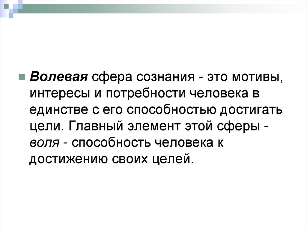 Волевая сфера сознания - это мотивы,интересы и потребности человека в