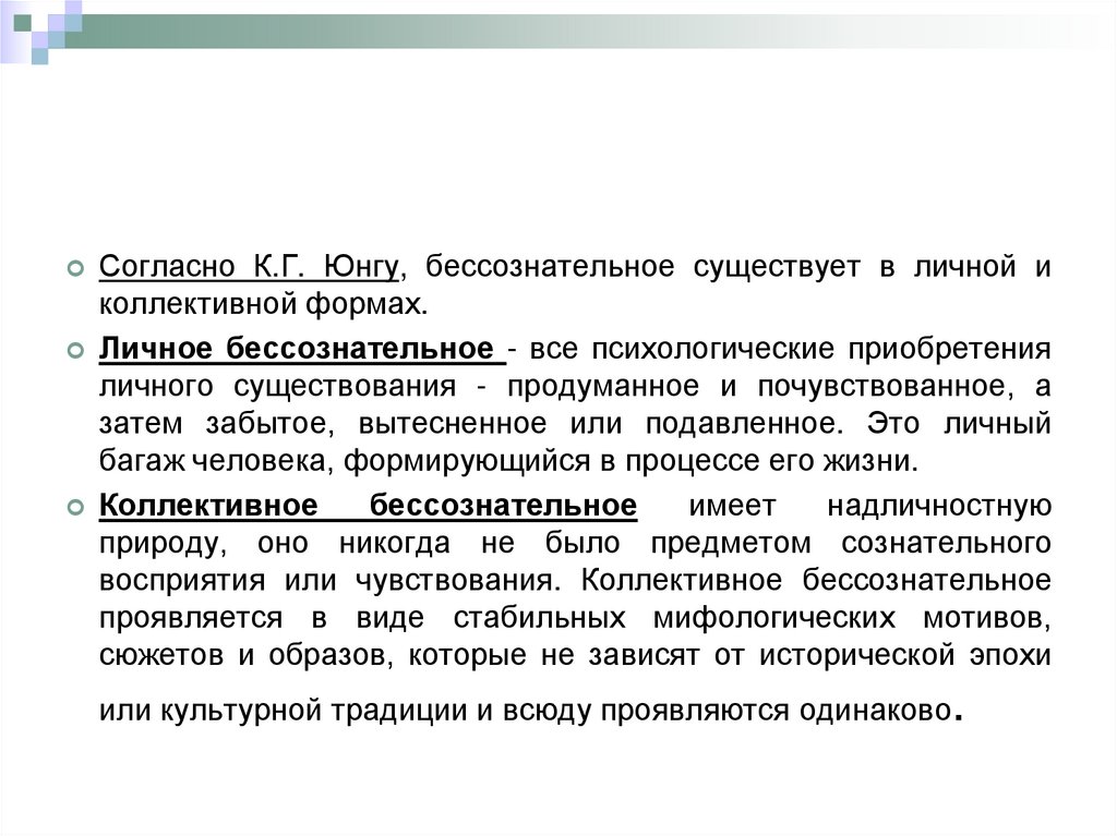 СогласноК.Г. Юнгу, бессознательное существует в личной и