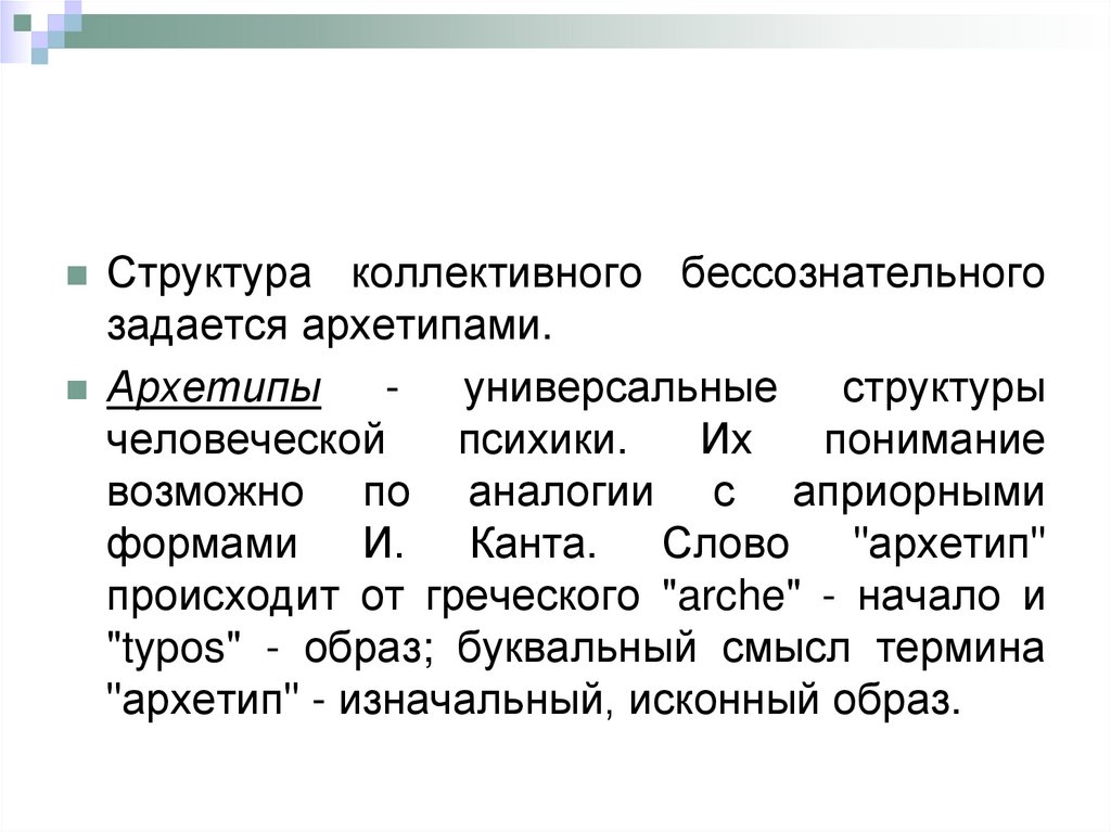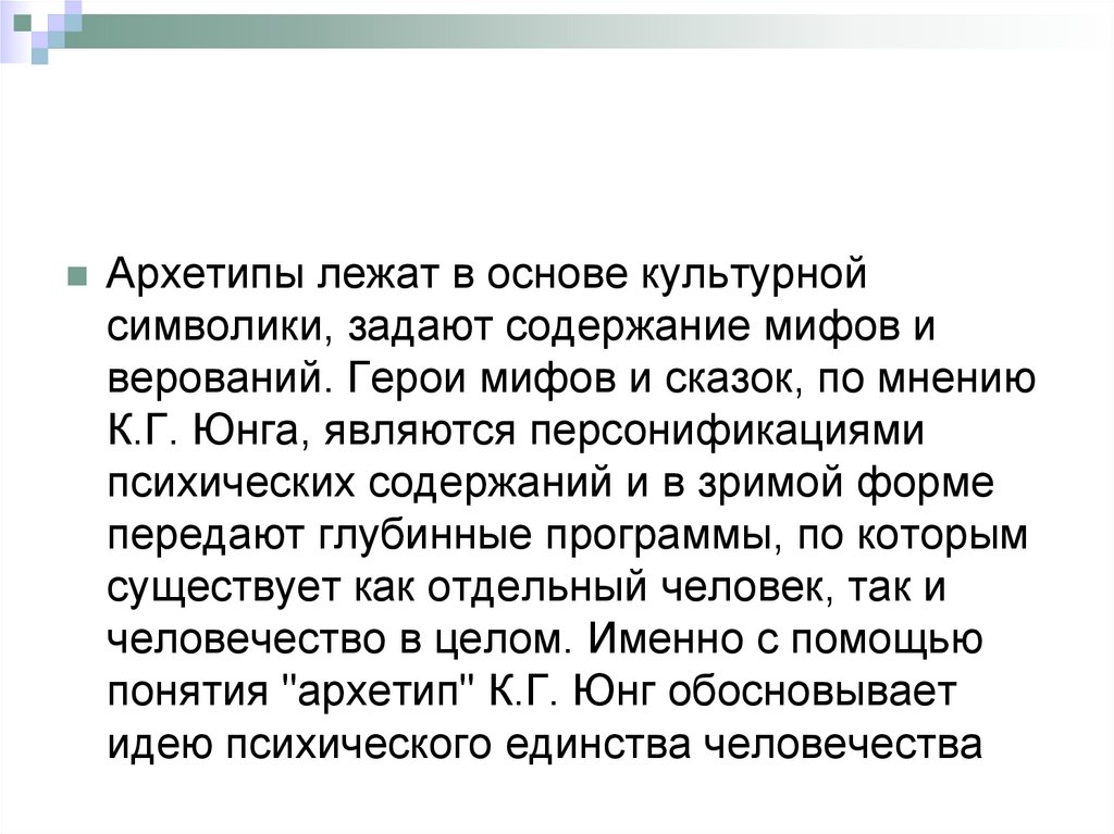 Архетипы лежат в основе культурнойсимволики, задают содержание мифов и