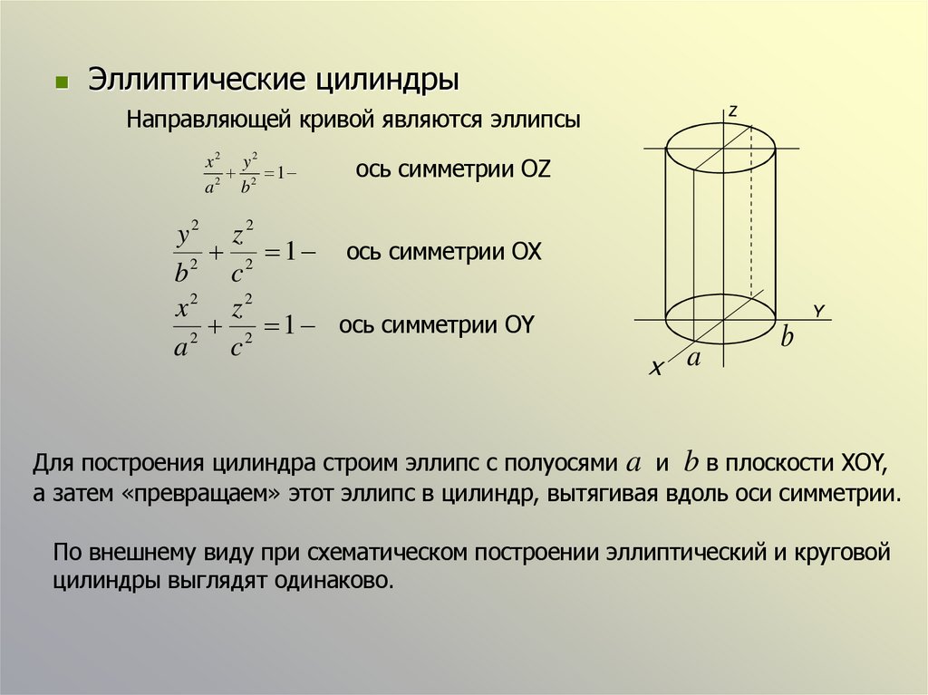 Эллиптические цилиндрыНаправляющей кривой являются эллипсы