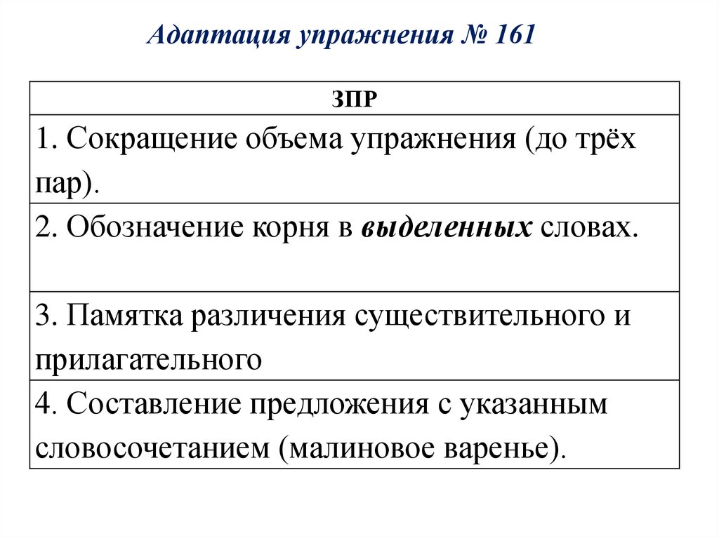 Адаптация упражнения № 161ЗПР