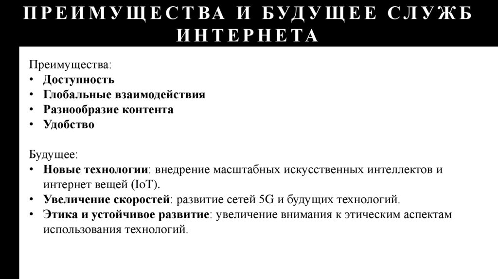 П Р Е И М У Щ Е С Т В А И Б УД У Щ Е Е С Л У Ж БИ Н Т Е Р Н Е ТА