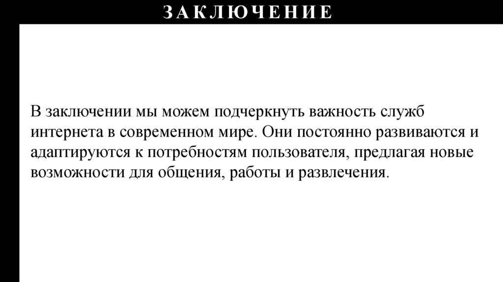 ЗАКЛЮЧЕНИЕВ заключении мы можем подчеркнуть важность служб