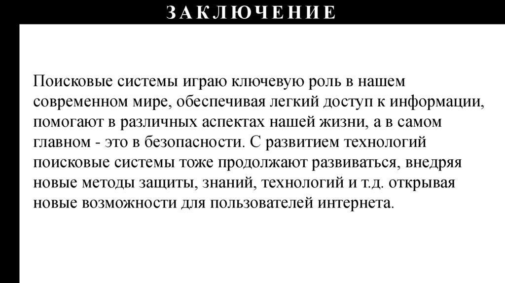 ЗАКЛЮЧЕНИЕПоисковые системы играю ключевую роль в нашем