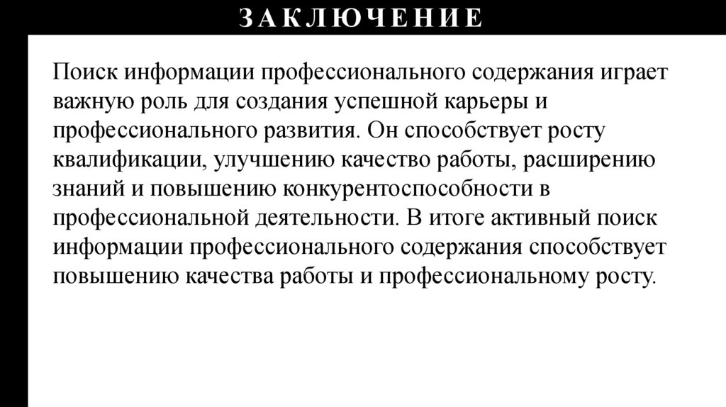 ЗАКЛЮЧЕНИЕПоиск информации профессионального содержания играет