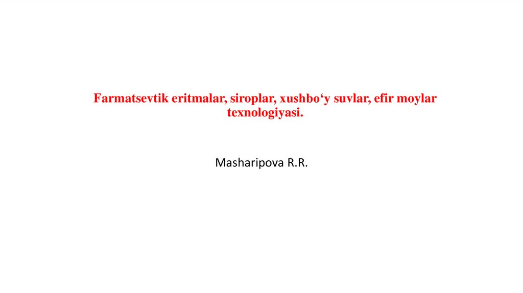1.Farmatsevtik eritmalar taʼrifi va tasnifi.