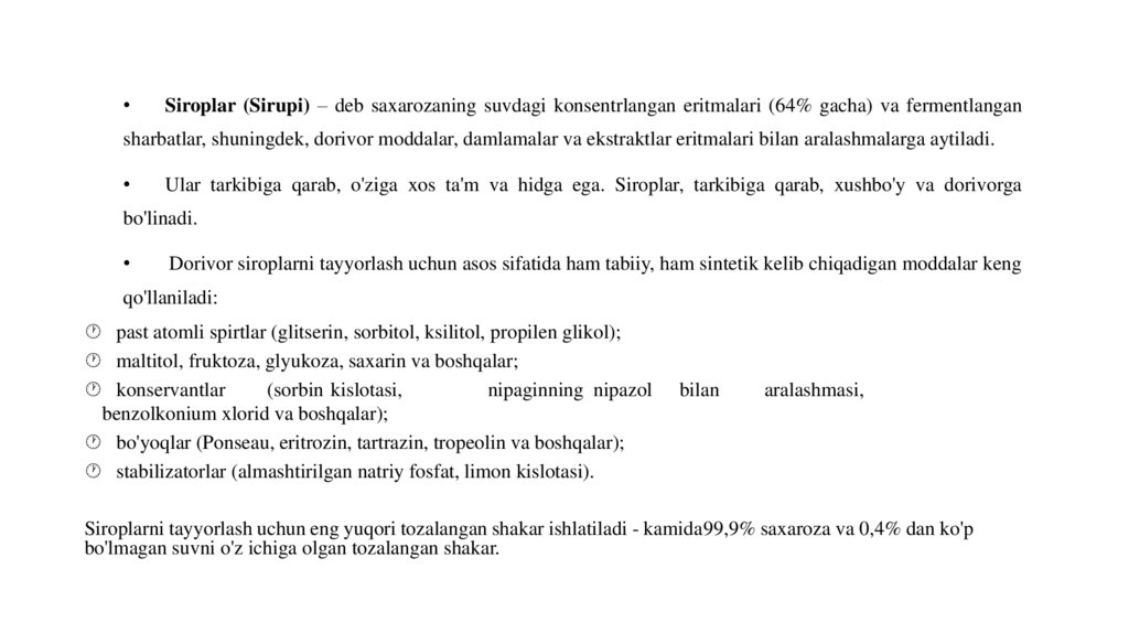 • Oddiy qand qiyomi.Sirupus Simplex. Sirupus Sacchari.