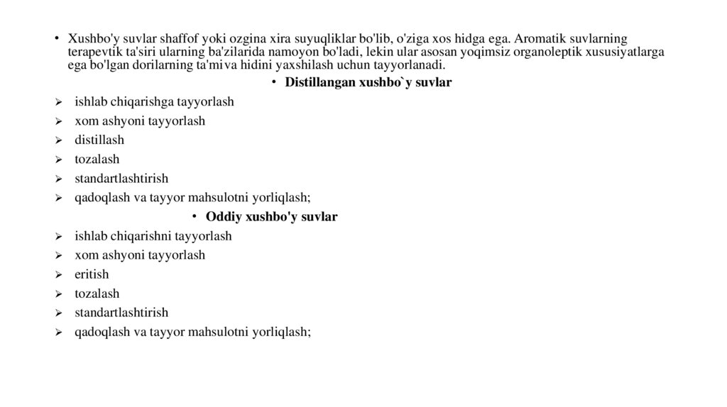 25. 4- laboratoriya ishi. Spirtli xushboʻy suvlar. Aqua spirituosa.