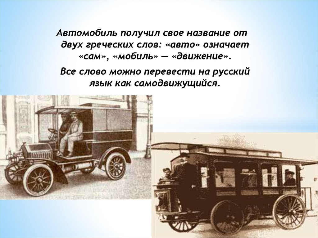 Автомобиль получил свое название отдвух греческих слов: «авто» означает