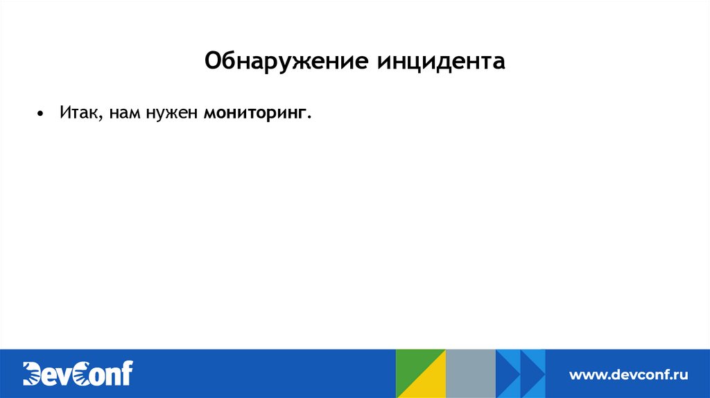 Обнаружение инцидента• Итак, нам нужен мониторинг.