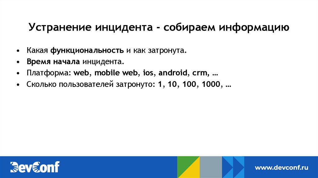 Устранение инцидента - собираем информациюКакая функциональность и как затронута.
