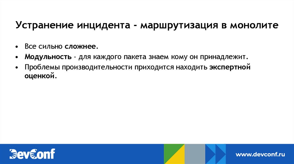 Устранение инцидента - маршрутизация в монолите• Все сильно сложнее.